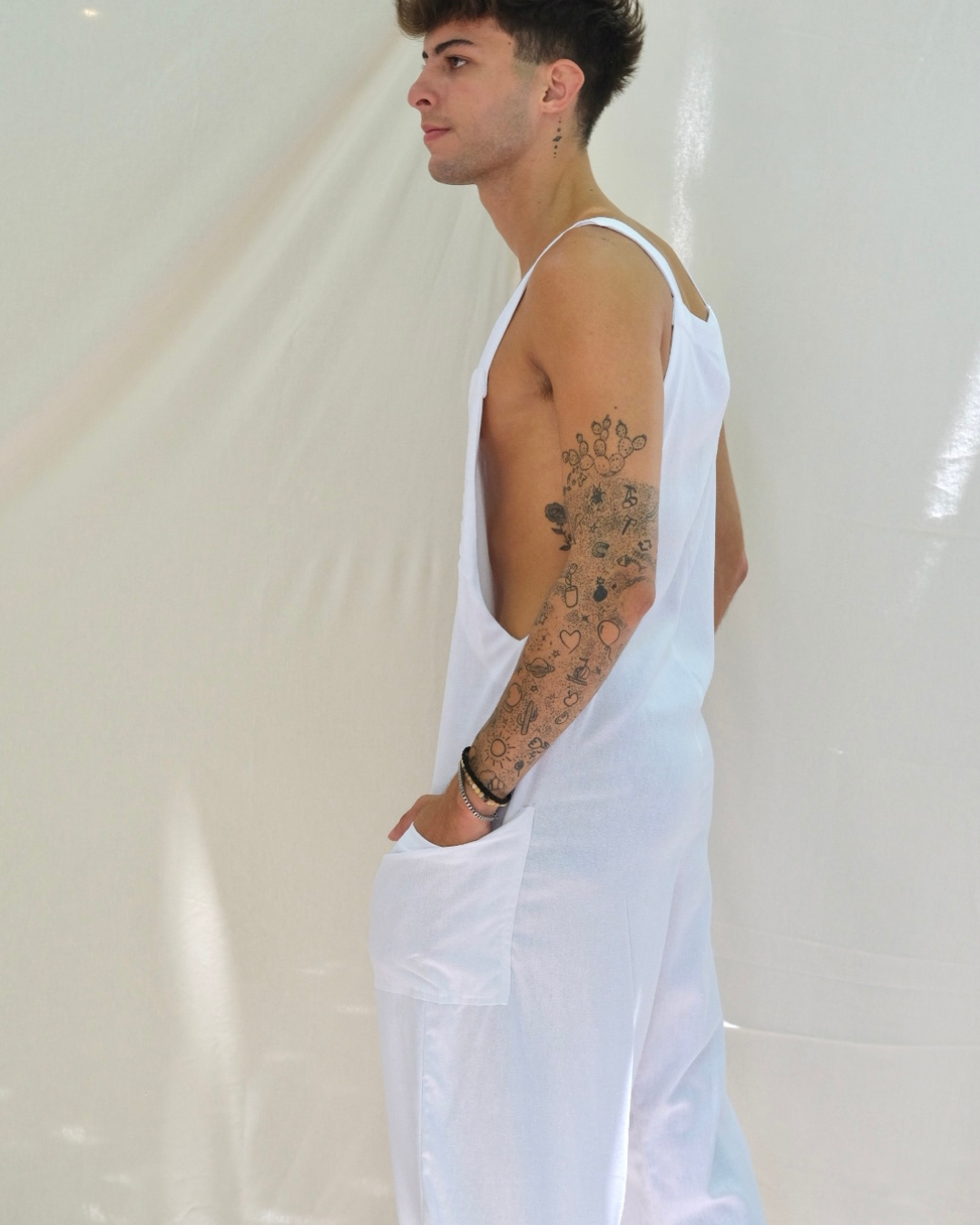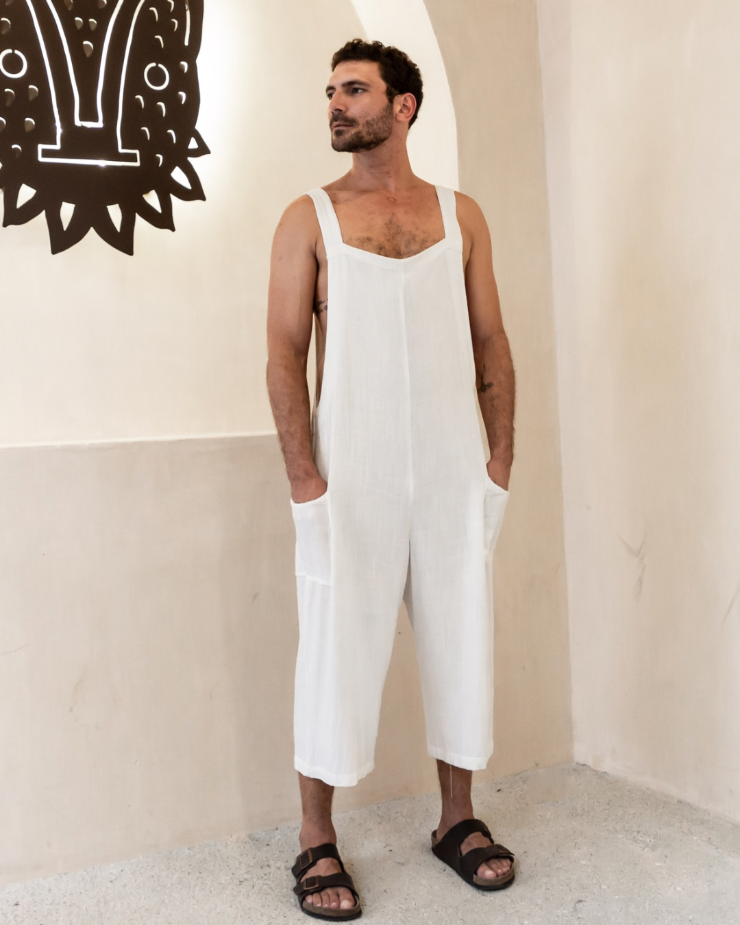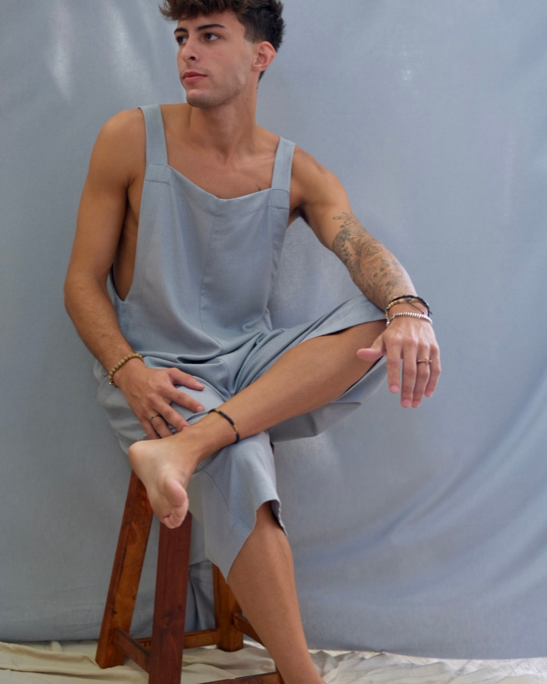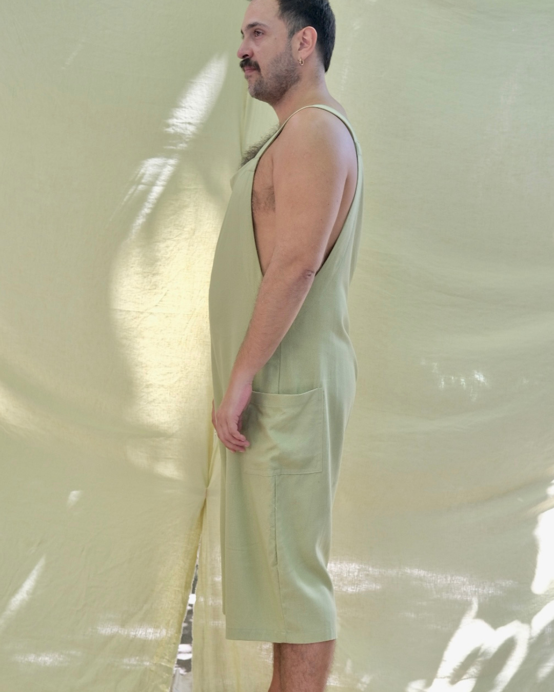 Confeccionado con tela de lino de alta calidad, este overol es fresco, ligero y cómodo, ideal para el verano.