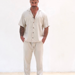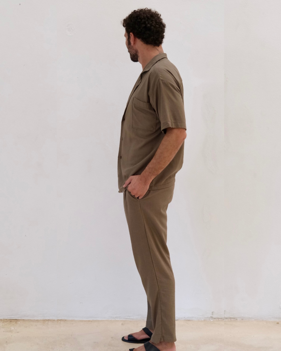 Confeccionado en lino 100% natural, el Pantalón Gabo es una pieza esencial de silueta clásica, pensada para ofrecer comodidad y elegancia en climas cálidos.