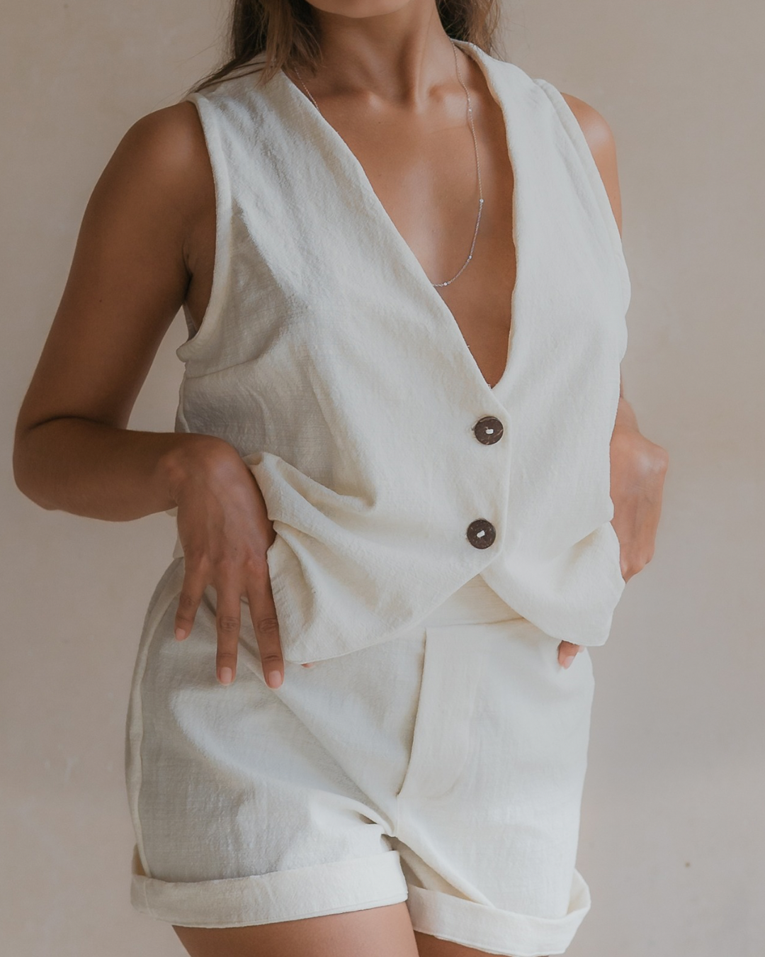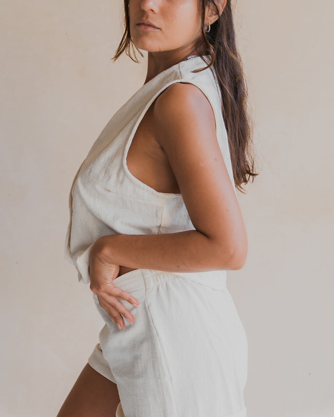 Los Shorts Dualis son una prenda cómoda y práctica confeccionada con manta lino de alta calidad. Su diseño incluye bolsillos laterales para llevar tus objetos personales y un elástico en la espalda para un ajuste cómodo y seguro. Los shorts son perfectos para un día de verano, ya sea para hacer deporte, ir a la playa o simplemente disfrutar del sol.